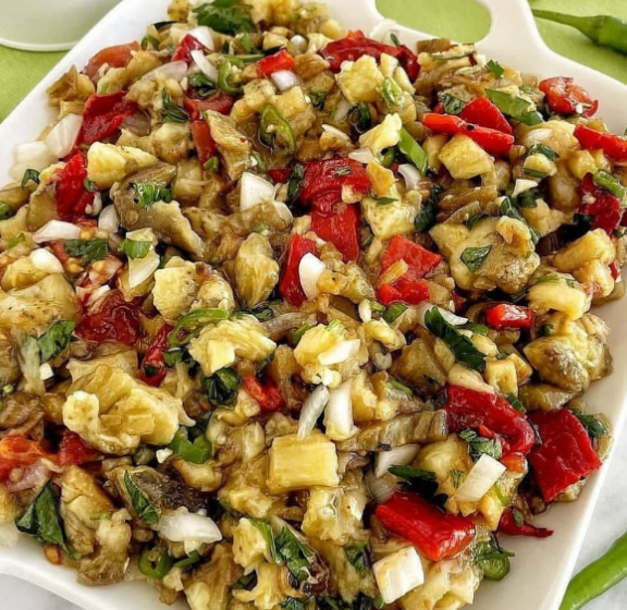 Erişteli Köz Patlıcan ve Kapya Biberli Salata Tarifi